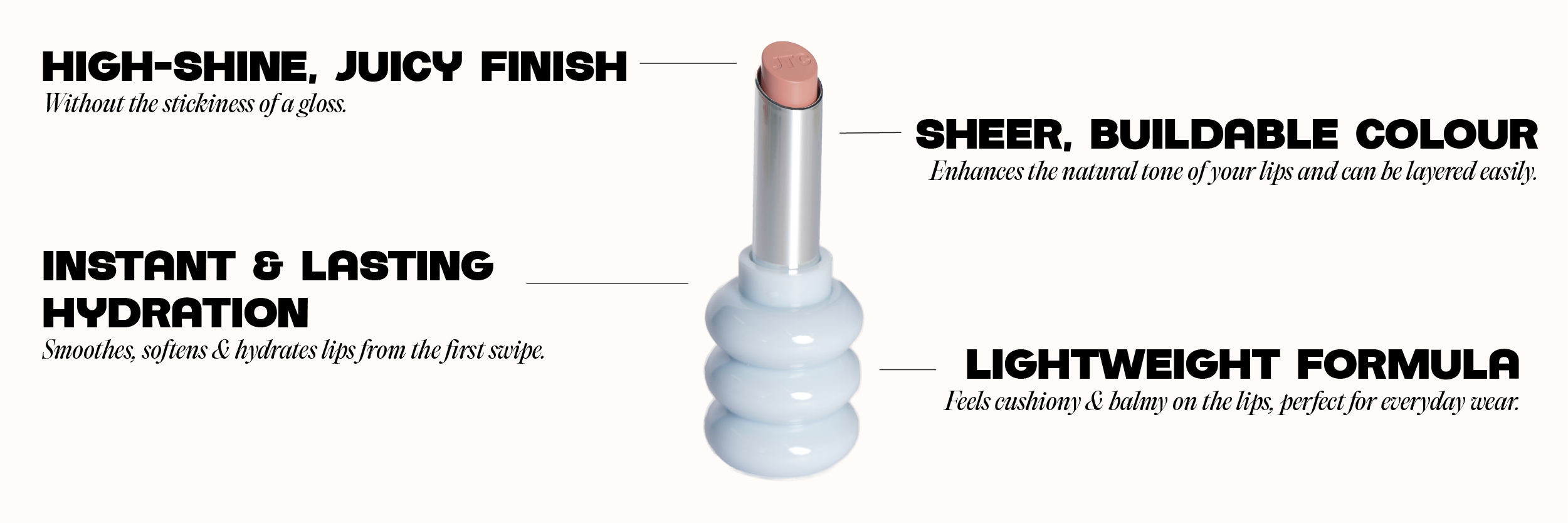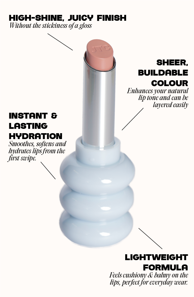 Infused with vitamin E, coconut, and organic oils, it keeps lips hydrated, smooth, and comfortable all day. You get the shine of a gloss, the simplicity of a lipstick, and the nourishment of a balm, leaving your pout looking juicy, luminous, and effortlessly fresh all day.